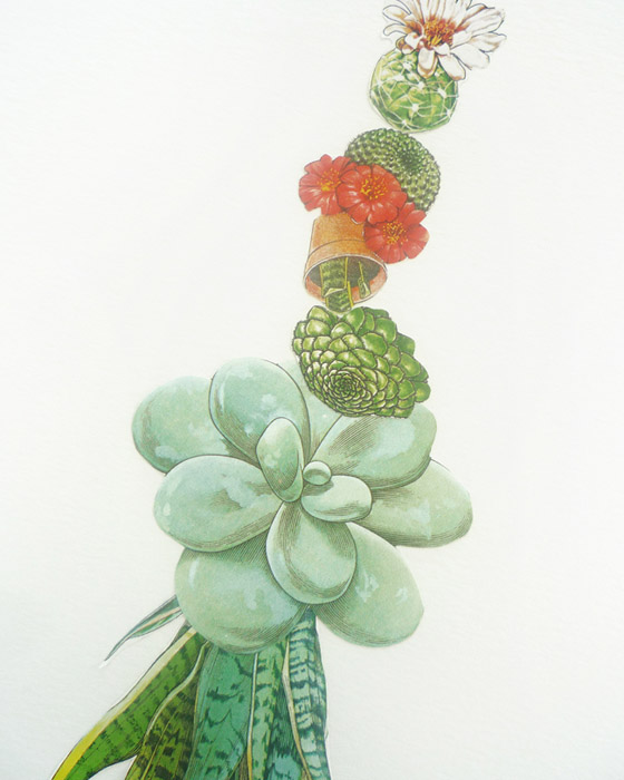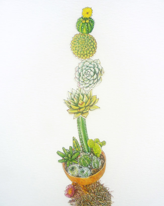 Growth is one of her latest series where she has gone “back to basics, back to making art because it’s fun.” I love the little stacked plants! For some reason the colours and textures seem so cozy to me, like you want to hang them in your kitchen and have them near you while baking some treats. And come on, who can resist a well stacked succulent or cactus? Yup, not us!